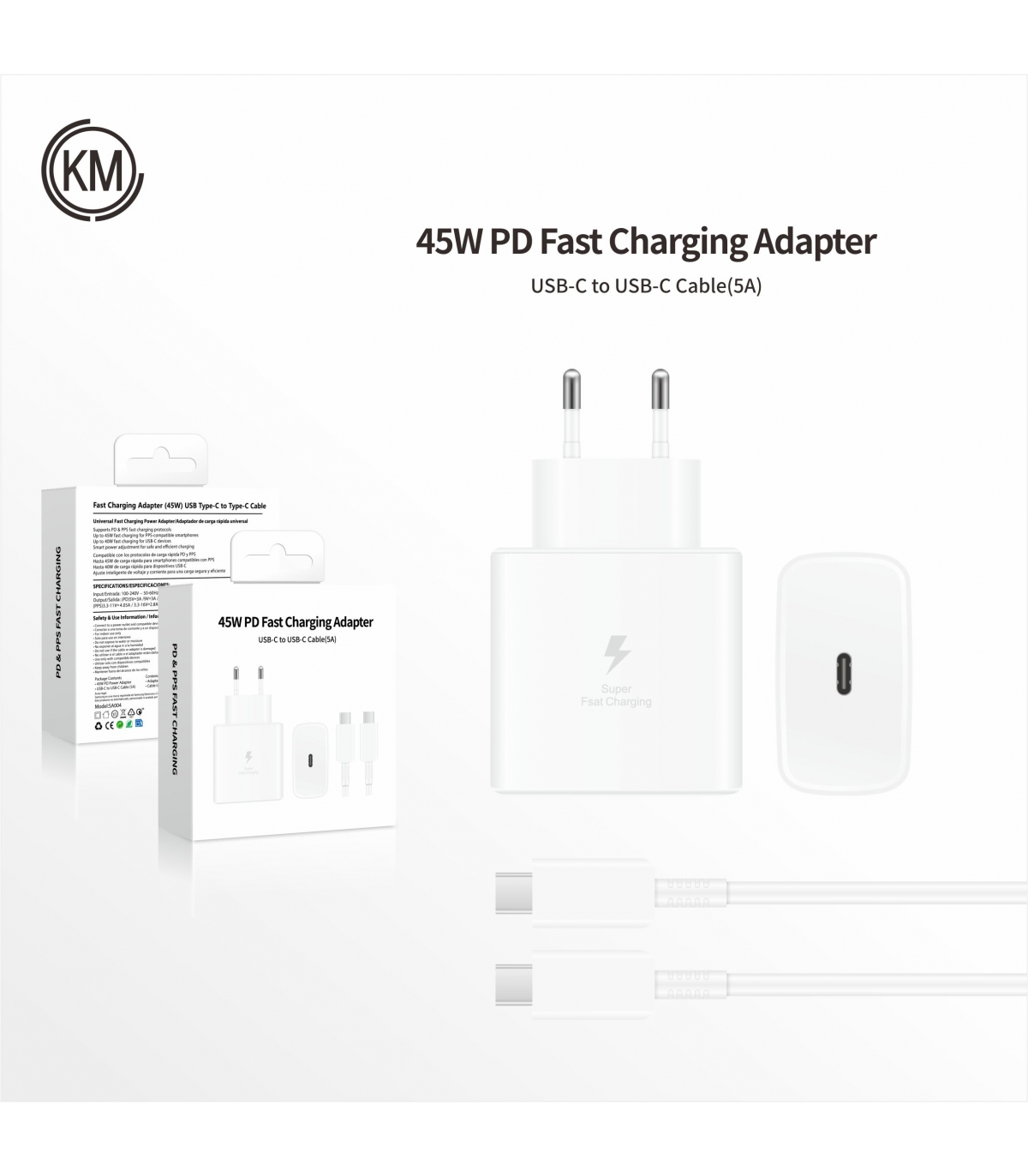 CARGADOR PARED PD 45W CABLE TYPE-C A TYPE-C [BLANCO]