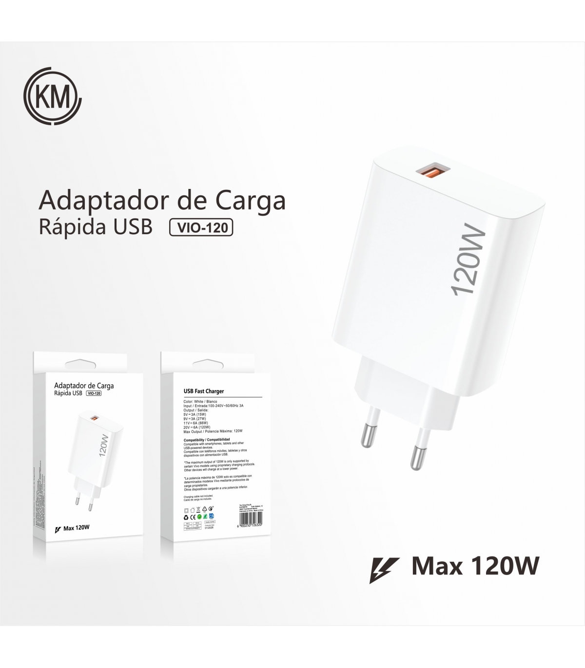 充电器_CARGADOR PARED 120W PARA VIVO SIN CABLE