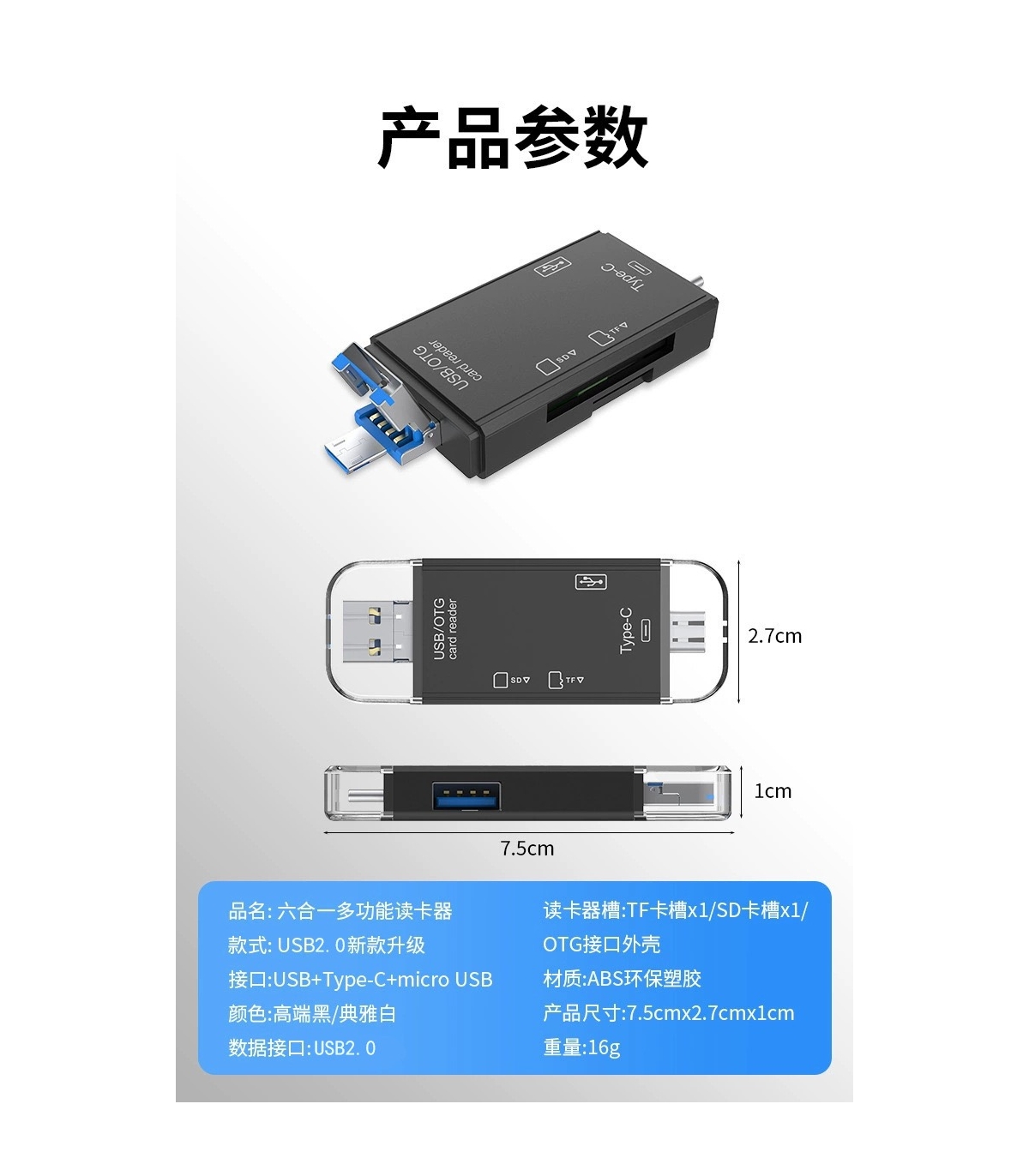 读卡器6合1 ATUD-05 Adaptador de Lector de Tarjetas de Memoria