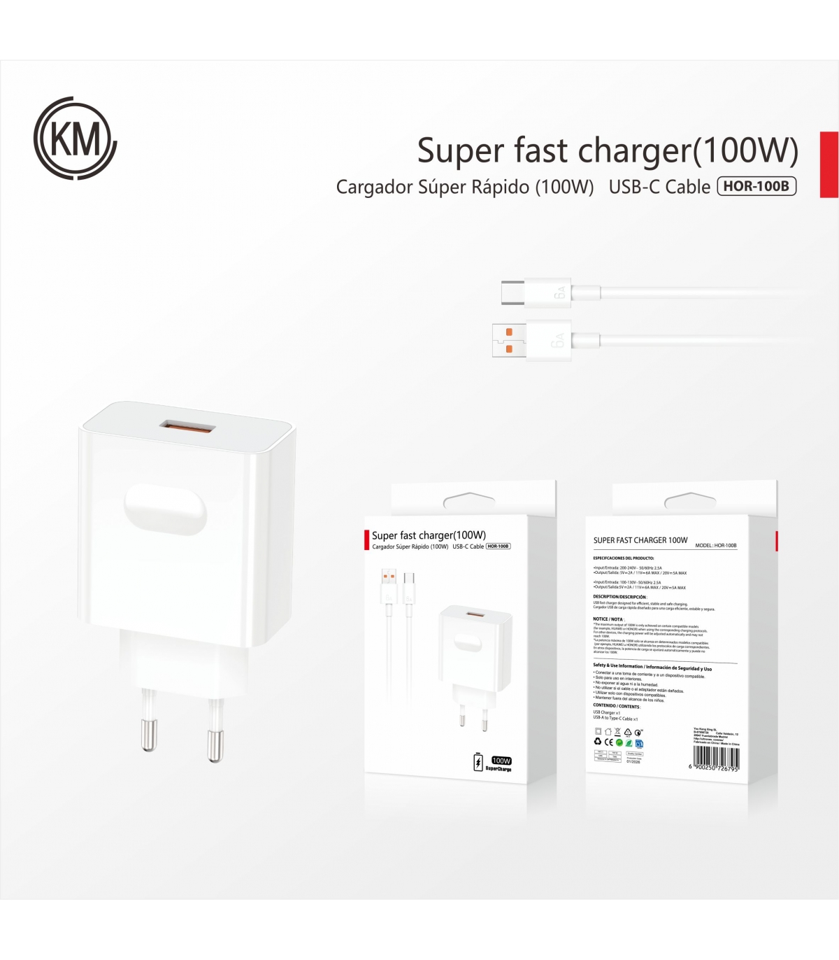 充电器_CARGADOR PARED 100W PARA HONOR CABLE TYPE-C
